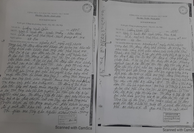 Đến 22h00 ngày 11/6/2020, tôi đến trước số 30 An Dương, Yên Phụ, Tây Hồ, Hà Nội. Lúc này, tổ công tác Công an phường Bưởi làm nhiệm vụ tại đây đã đến kiểm tra hành chính đối với tôi.