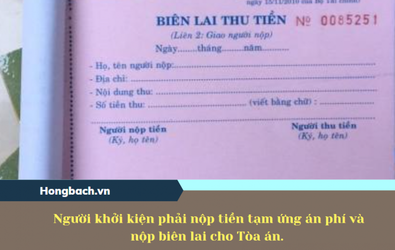 Trong thời hạn 10 ngày kể từ ngày nhận được thông báo nộp tiền tạm ứng án phí, người khởi kiện phải nộp tiền tạm ứng án phí và nộp biên lai cho Tòa án.