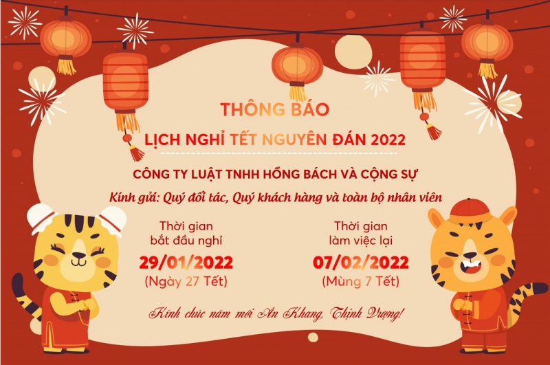 Thông báo lịch nghỉ Tết Nguyên Đán năm 2022