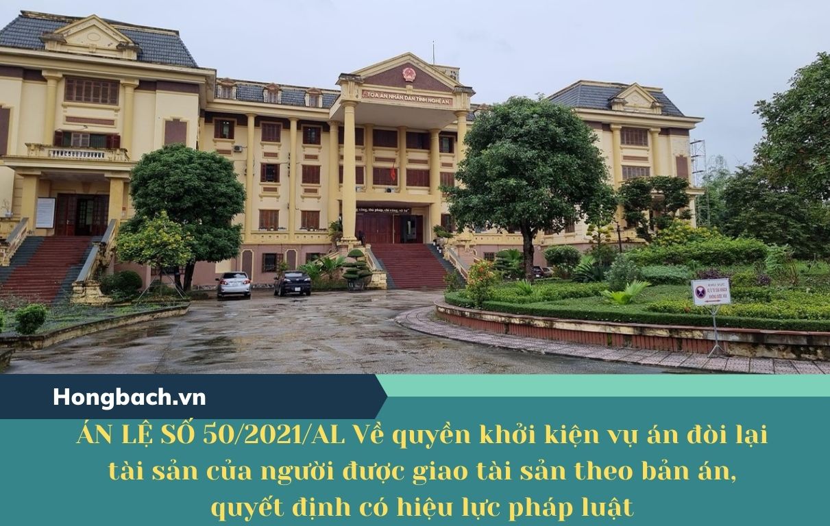 7. Án lệ số 50/2021/AL về quyền khởi kiện vụ án đòi lại tài sản của người được giao tài sản theo bản án, quyết định có hiệu lực pháp luật;