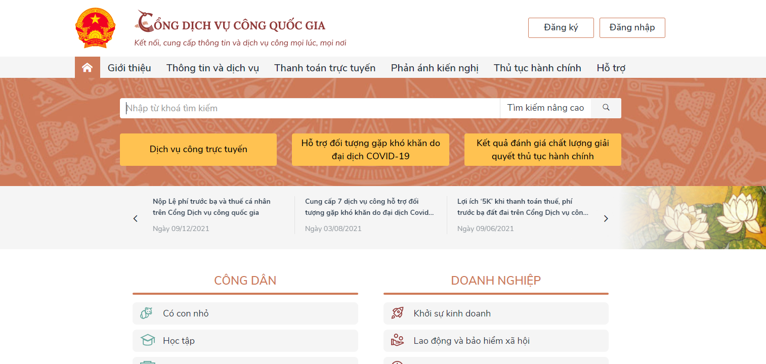 Ngày 04/04/2022, Thủ tướng Chính phủ ban hành Quyết định số 422/QĐ-TTg: Phê duyệt Danh mục dịch vụ công trực tuyến tích hợp, cung cấp trên Cổng dịch vụ công quốc gia năm 2022.