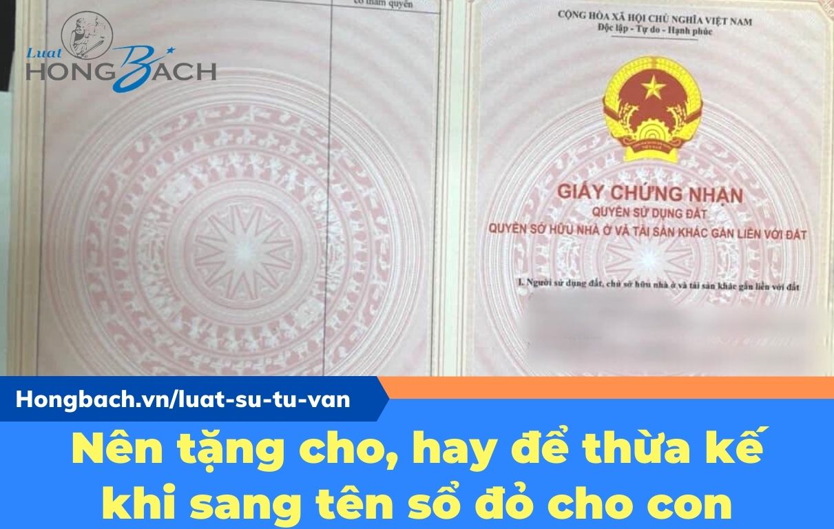 Hiện nay, tôi muốn sang tên sổ đỏ cho một trong hai người con của tôi thì tôi nên chọn phương thức nào? Viết di chúc thừa kế quyền sử dụng đất hay tặng cho quyền sử dụng đất khi sang tên sổ đỏ. Xin cảm ơn Luật sư.