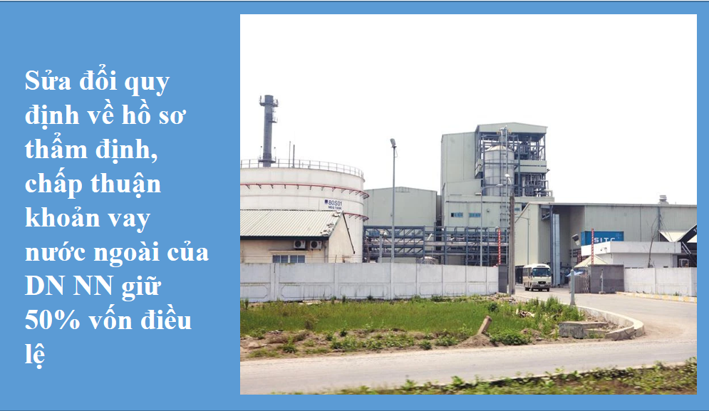 - Ý kiến của cơ quan đại diện chủ sở hữu đối với sự cần thiết của khoản vay nước ngoài, khả năng cân đối vốn đối ứng của doanh nghiệp, khả năng trả nợ khoản vay nước ngoài, năng lực tài chính của doanh nghiệp.